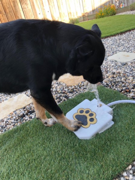 Teach your dog to step onto the printed-paw pattern of the water fountain to dispense water. Each purchase includes some training instructions you can follow to ease your pooch into using the fountain. With time, he or she will be stepping on the fountain pedal naturally for a sip of water!