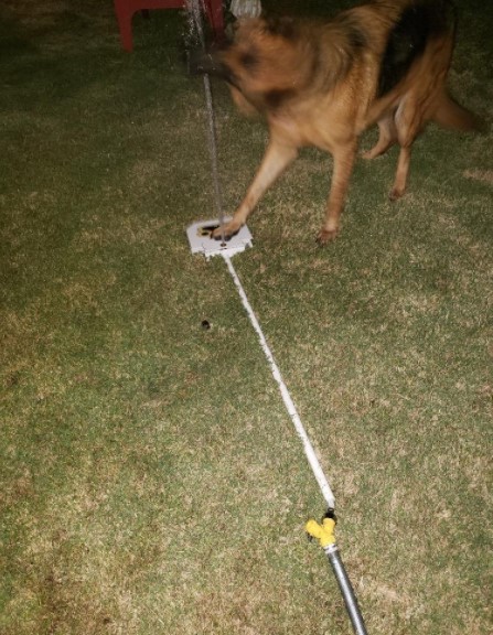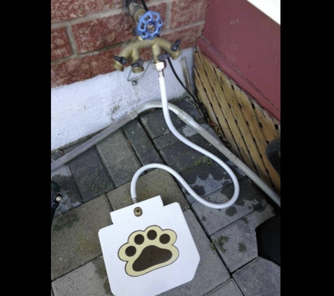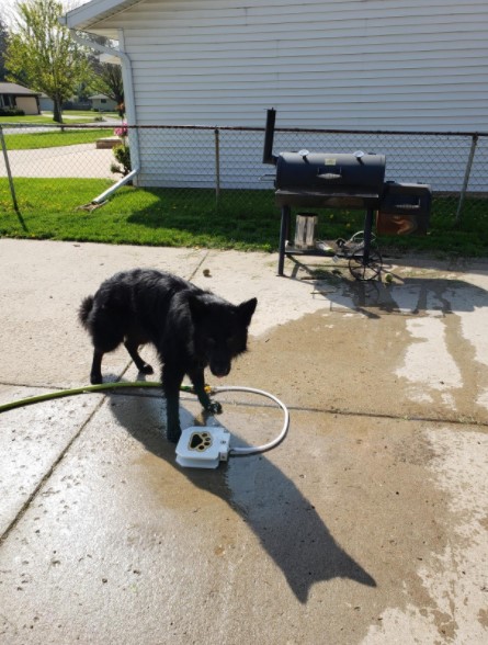 Your furry best friend does all the work. Here’s the detailed installation instruction: take Automatic Outdoor Dog Water Fountain and a garden hose. Connect the Water Fountain to the hose. Screw the hose into the two-way splitter (or directly onto your water valve) and let your fluffy friend enjoy drinking process! Our Automatic Outdoor Dog Water Fountain also requires no batteries or controller or anything fancy.