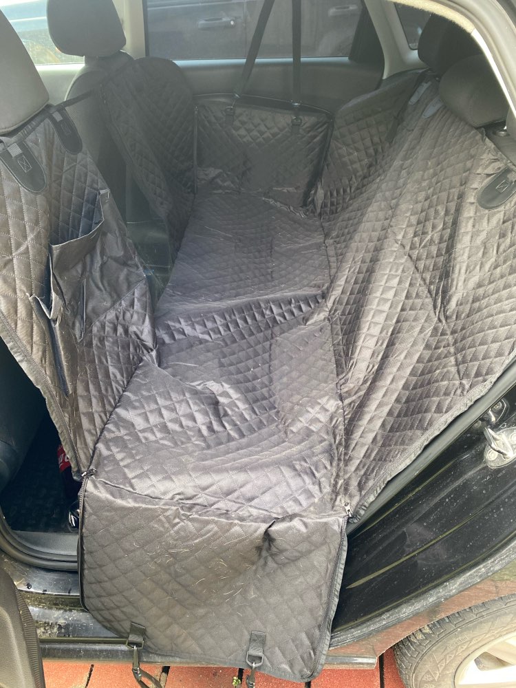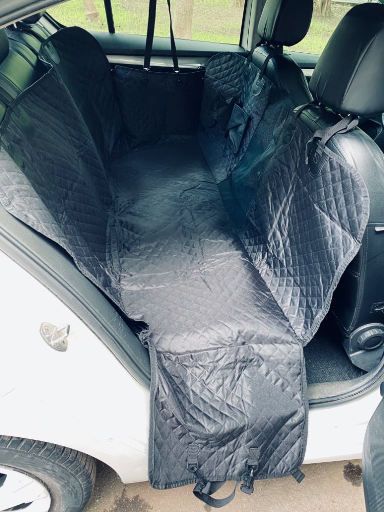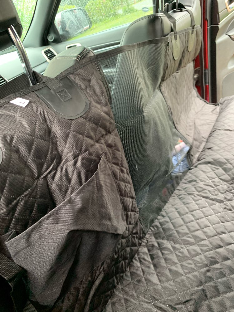 I am happy with my purchase and definitely recommend this product! Fits backseat nicely, and my dog can't chew off the straps - exrea star for the durability.
