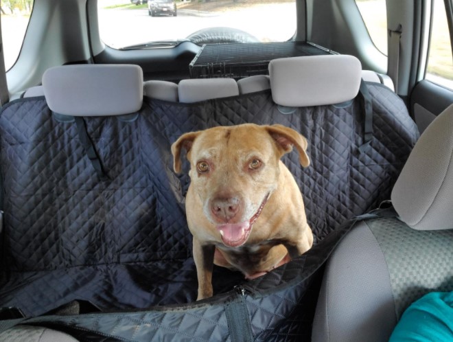 Fits the crossover back seat like a glove! Also seems to be comfy for paws, Lyonel has no complaints.