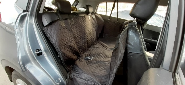 This dog cover is great! It fits exactly and the clips are really strong. Its adjustable so my dog wouldn't be able to pull it down!. The bottom is made from special rubber so the dog dont slip during driving.