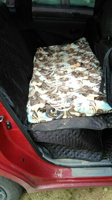 Great thing. Fits great into Polo sedan, and thick enough to keep the Stafford busy chewing the zippers.