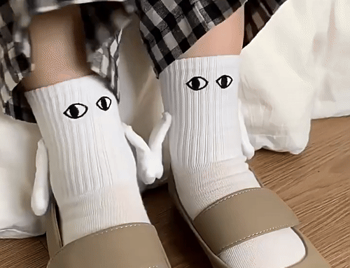 Wearing these socks never fails to brighten my day. I love the hand-holding feature and how they can interact with other sock pairs. I gave the second pair to a coworker, and now we enjoy high-fiving throughout the workday—truly a mood booster!