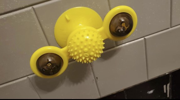 I just got this in the mail today because I love to spoil my kitties and it’s super cute. I love the design of it. It’s super smooth material and I love that it can suction to things so it doesn’t have to sit in the middle of the floor. It comes with a bell, a light up ball and 2 catnip balls to put in the windmill. It’s very easy to set up. Highly recommend! Even my dog loves it!