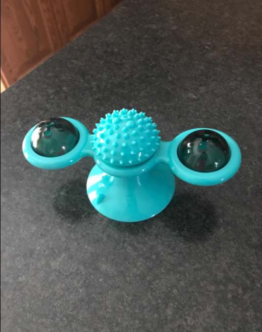 My cat just loves this toy! We have it on the window by our bathtub and she’s always running to spin the toy. She even rubs her head on the center to itch her head which she never does with other cat toys. I love the little blinking ball that goes inside one of the sides of the spinners. My cat will watch the lights blink and go back to spin the toy so they will blink again. Definitely keeps her interest and worth every penny! Highly recommend!
